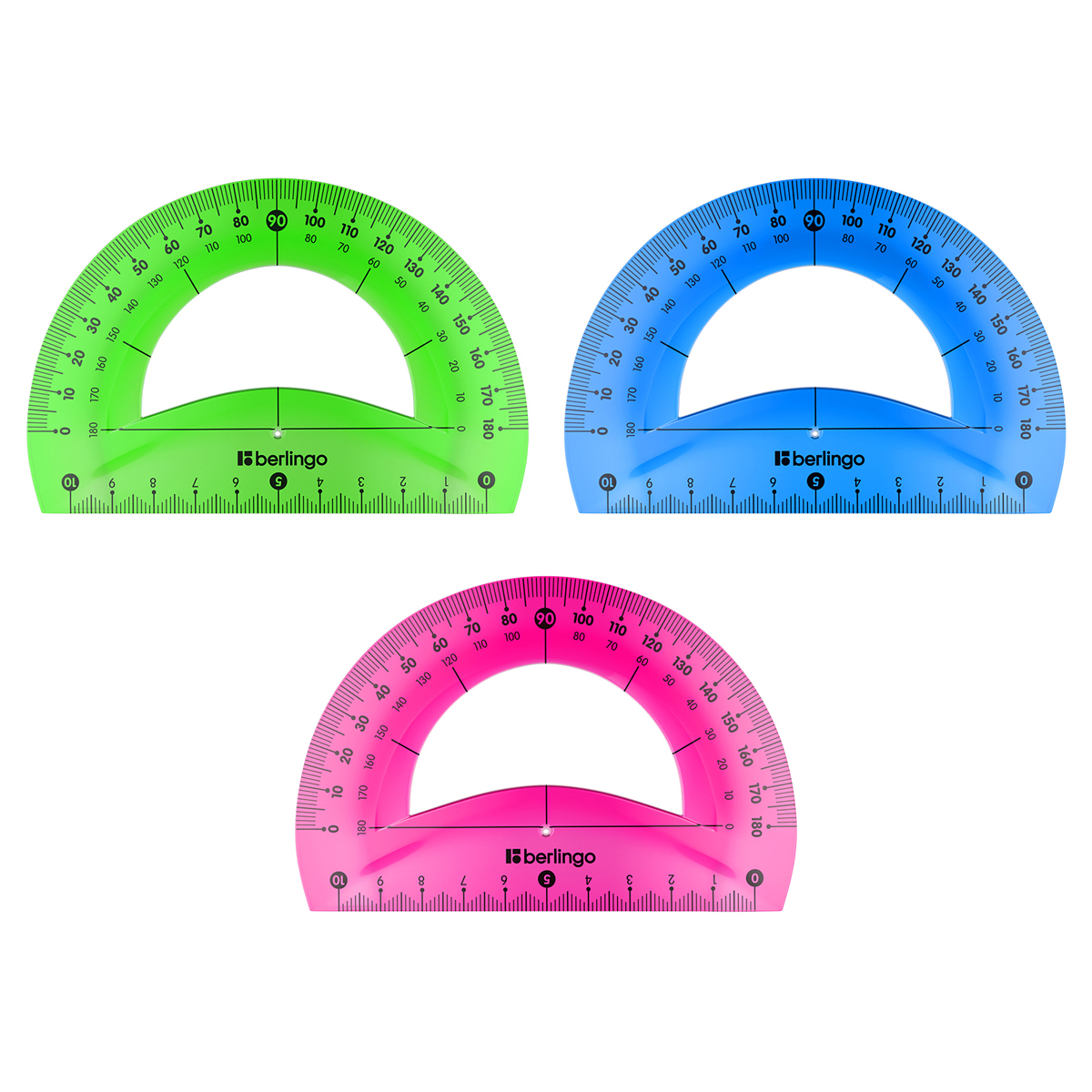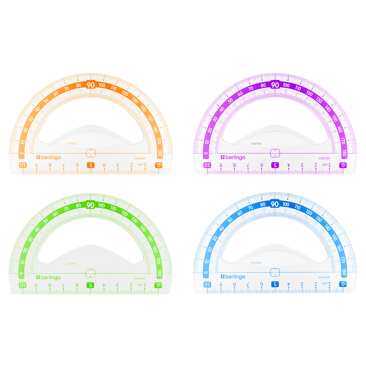 Транспортир 10см, 180° Berlingo "Color", пластиковый, ассорти, европодвес