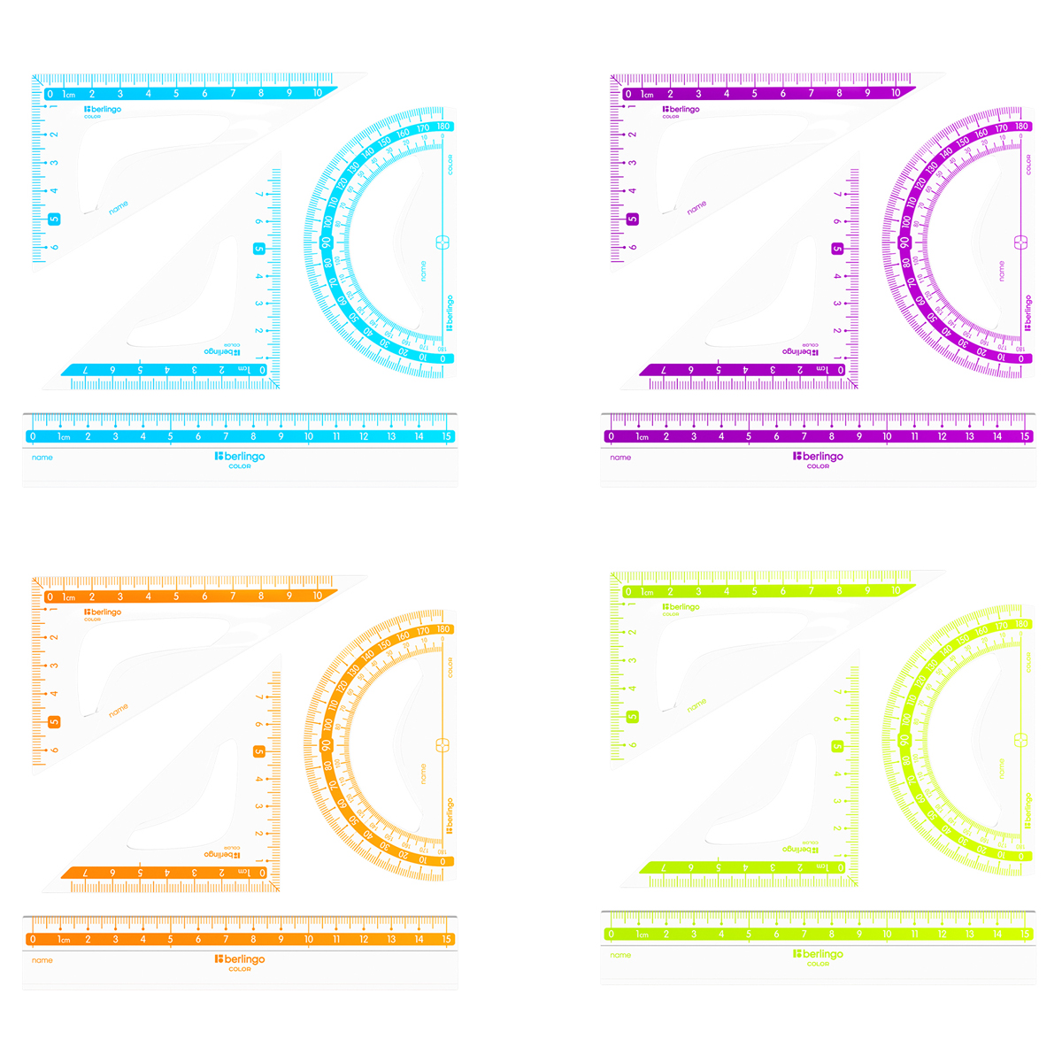Набор чертежный малый Berlingo "Color" (треуг. 2шт., линейка 15см, транспортир), прозрачный