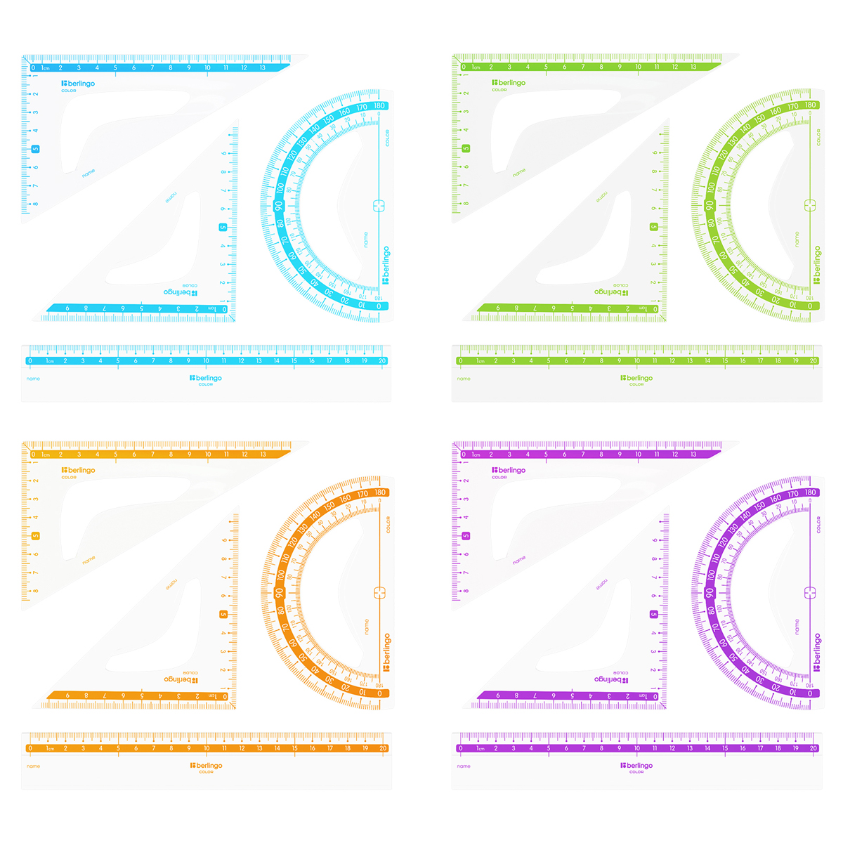 Набор чертежный средний Berlingo "Color" (треуг. 2шт., линейка 20см, транспортир), прозрачный