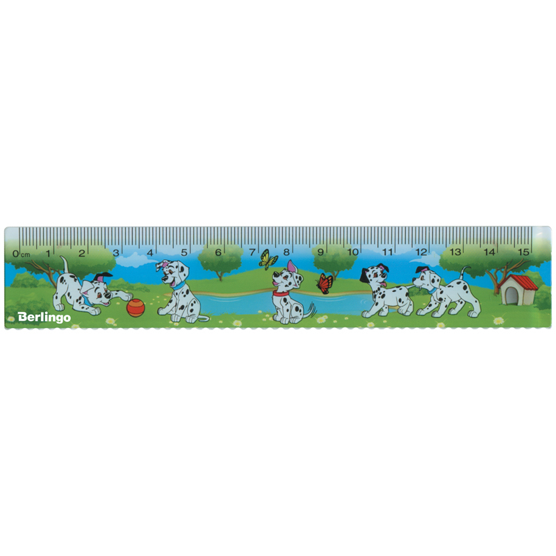 Линейка 15см Berlingo "Далматинцы", пластиковая, европодвес