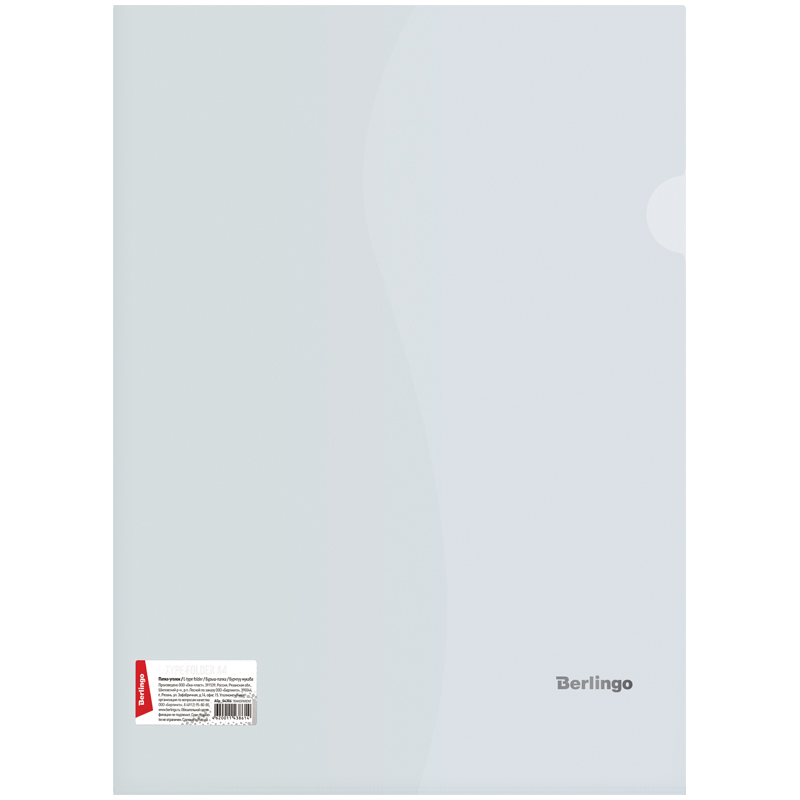 Папка-уголок Berlingo, А4, 180мкм, прозрачная бесцветная, индив. ШК