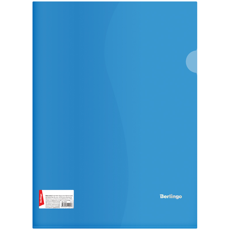 Папка-уголок Berlingo, А4, 180мкм, прозрачная синяя, индив. ШК