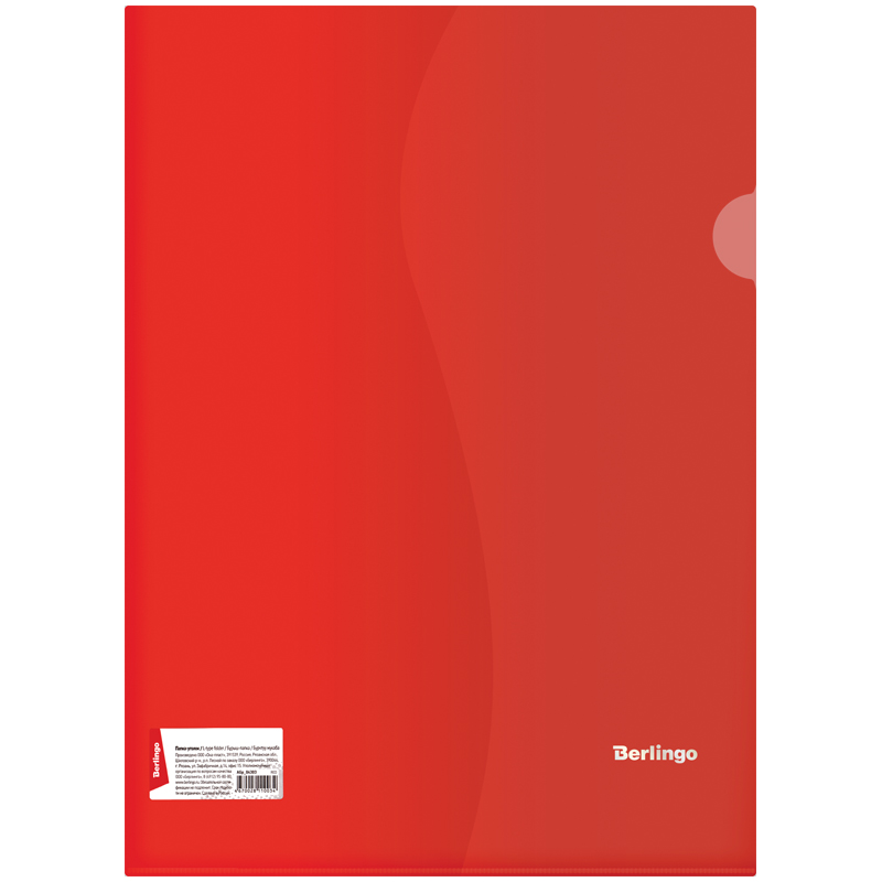 Папка-уголок Berlingo, А4, 180мкм, прозрачная красная, индив. ШК