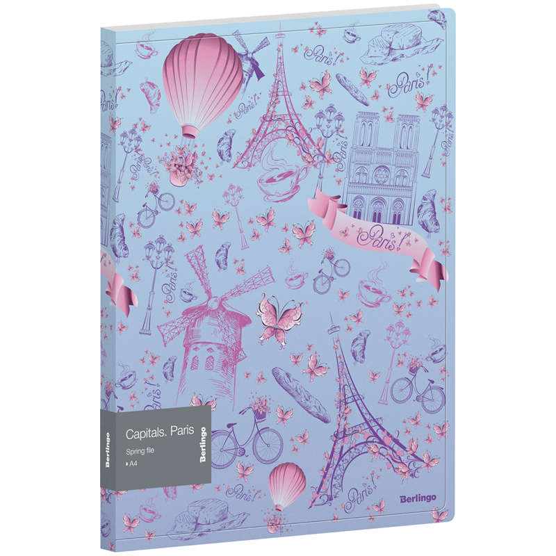 Папка с пружинным скоросшивателем Berlingo "Capitals. Paris" А4, 17мм, 600мкм, с внутр. карманом, с рисунком
