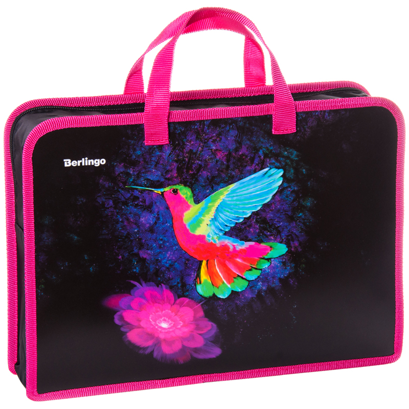 Папка с ручками 1 отделение, А4 Berlingo "Hummingbird", 340*245*75мм, пластик, на молнии