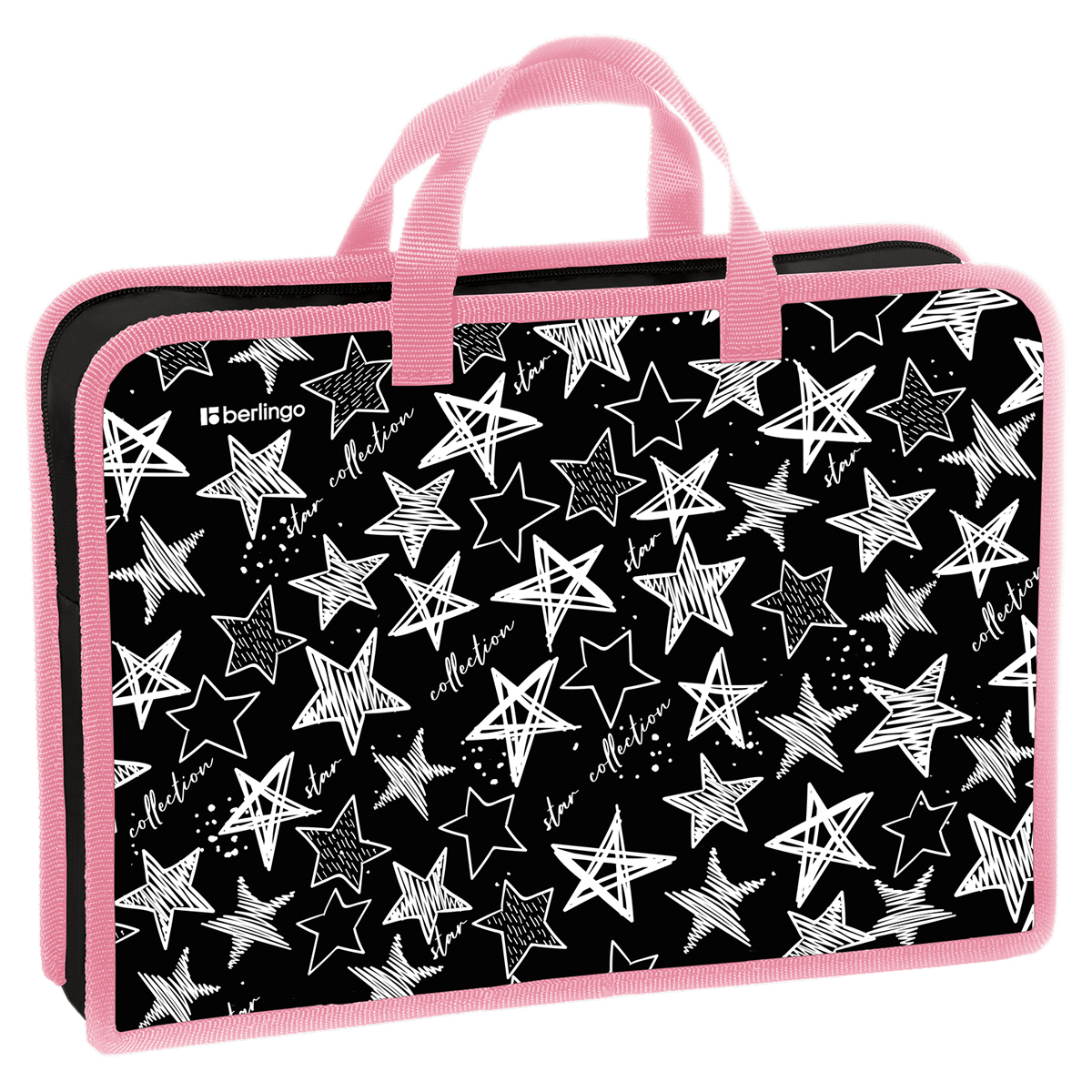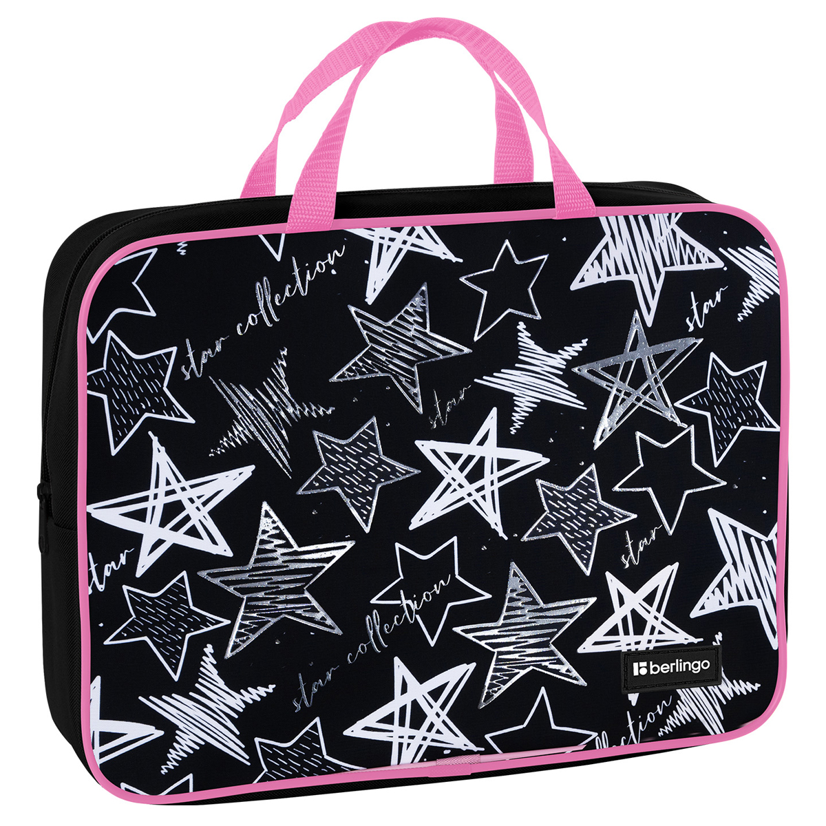 Папка с ручками 1 отделение, А4 Berlingo "Glossy stars", 340*245*75мм, пластик, на молнии