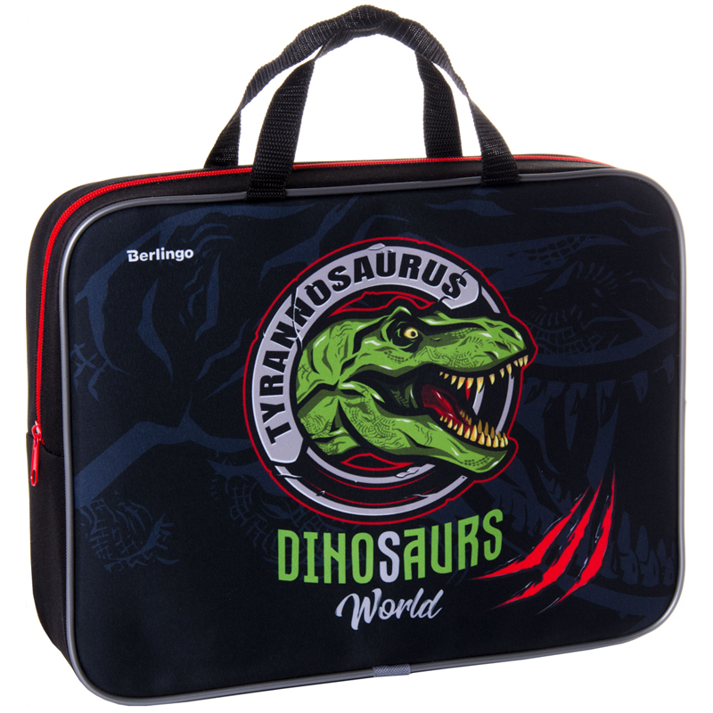 Папка с ручками 1 отделение, А4 Berlingo "Dino world", 350*265*80мм, текстиль, на молнии
