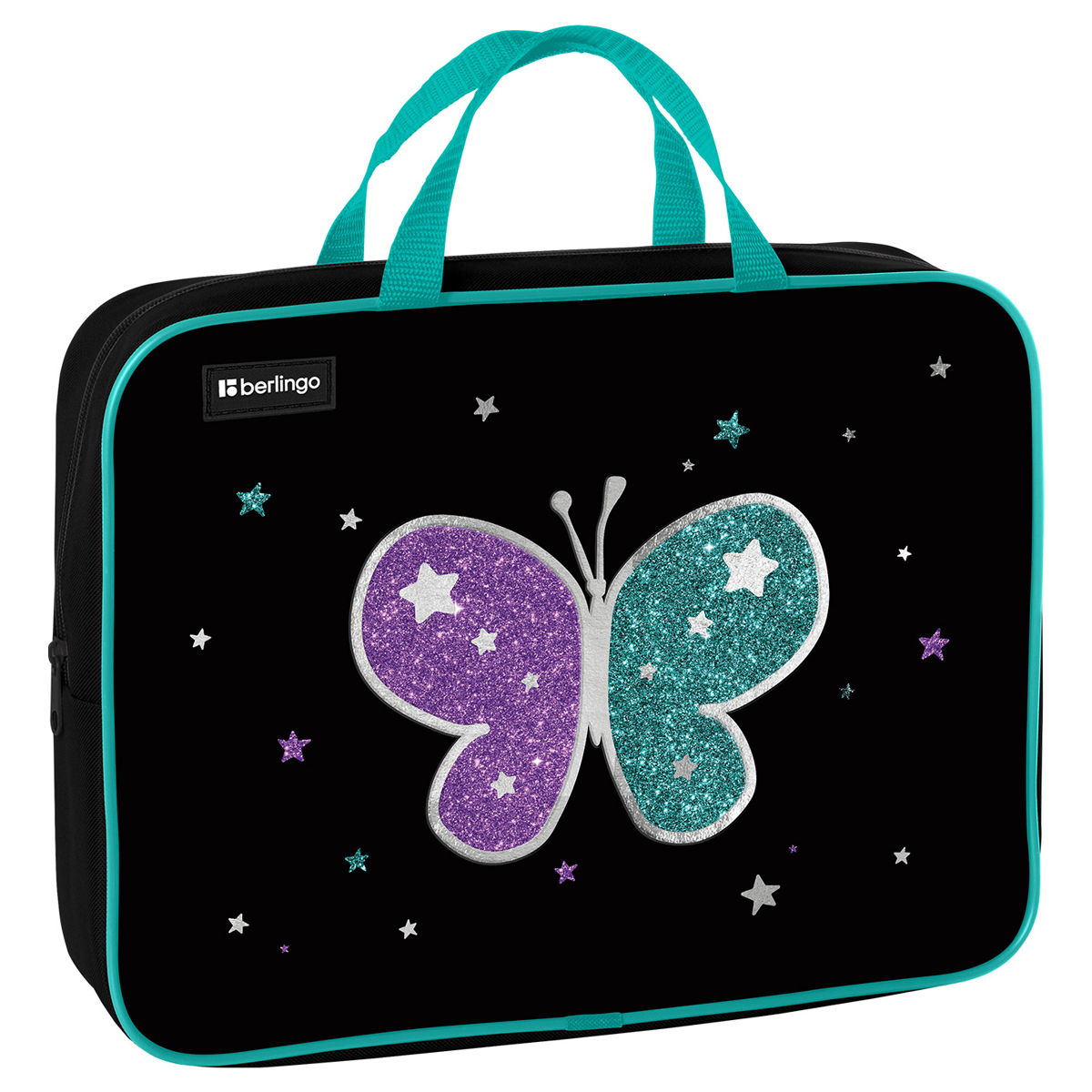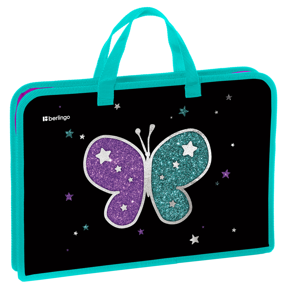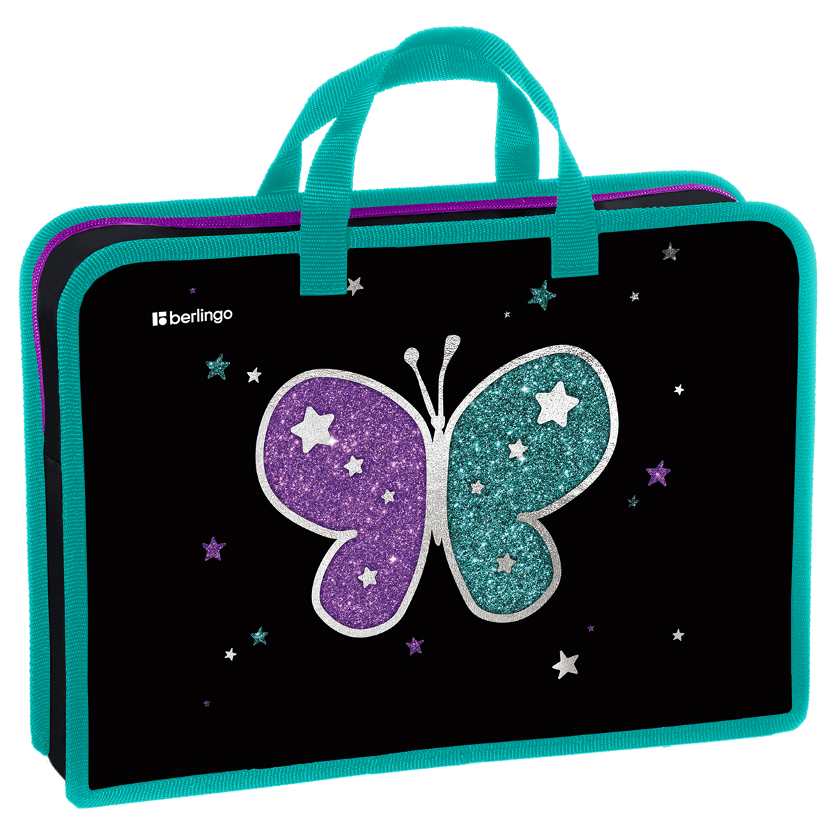Папка с ручками 1 отделение, А4 Berlingo "Shining butterfly", 340*245*40мм, пластик, на молнии