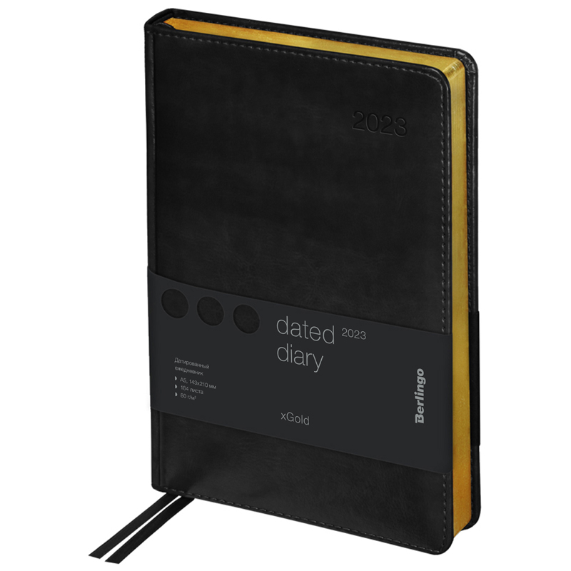 Ежедневник датированный 2023г., А5, 184л., кожзам, Berlingo "xGold", зол. срез, черный