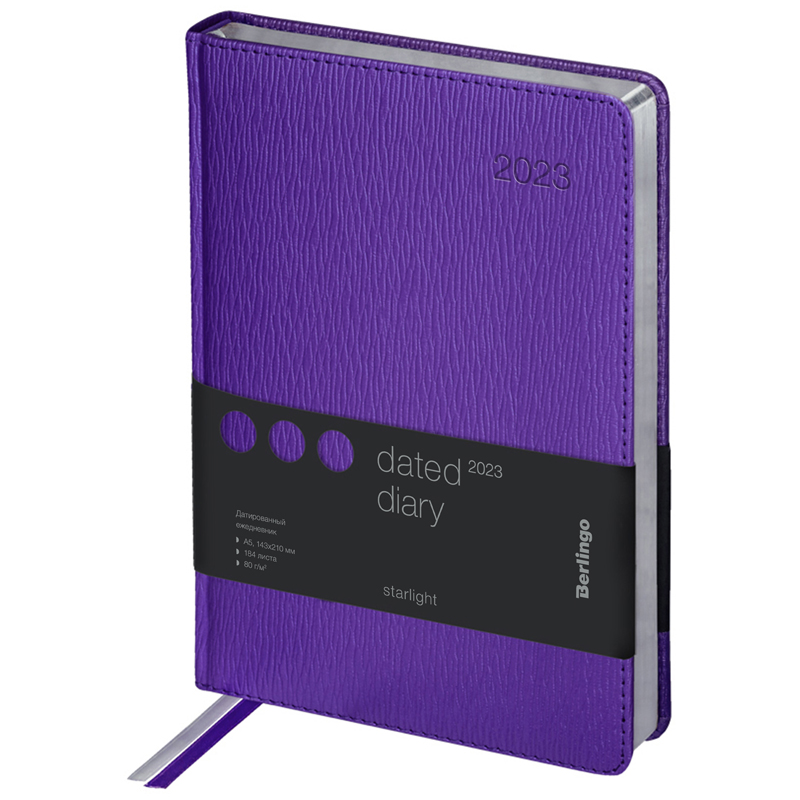 Ежедневник датированный 2023г., А5, 184л., кожзам, Berlingo "Starlight S", металлик срез, фиолетовы