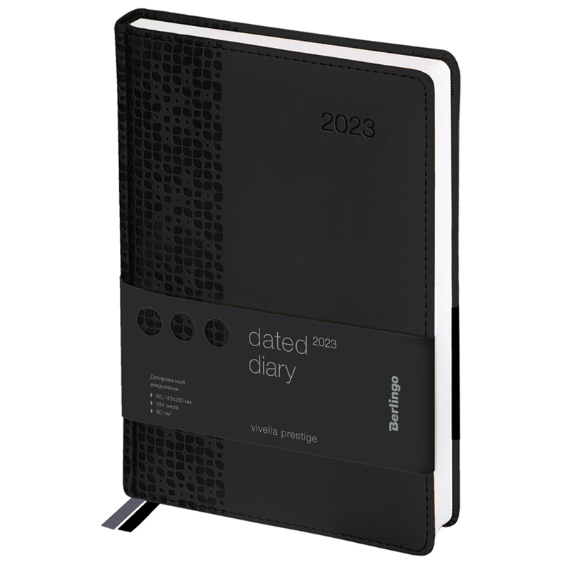 Ежедневник датированный 2023г., А5, 184л., кожзам, Berlingo "Vivella Prestige", черный