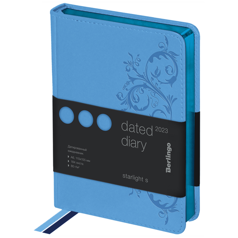 Ежедневник датированный 2023г., А6, 184л., кожзам, Berlingo "Starlight S", металлик срез, голубой