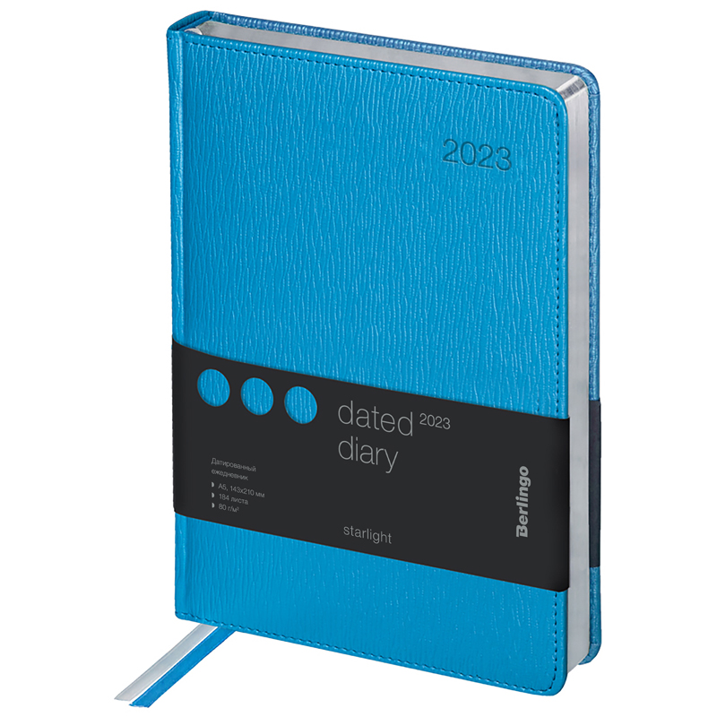 Ежедневник датированный 2023г., А5, 184л., кожзам, Berlingo "Starlight", сер. срез, голубой