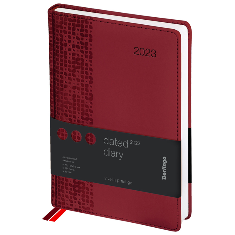 Ежедневник датированный 2023г., А5, 184л., кожзам, Berlingo "Vivella Prestige", бордовый