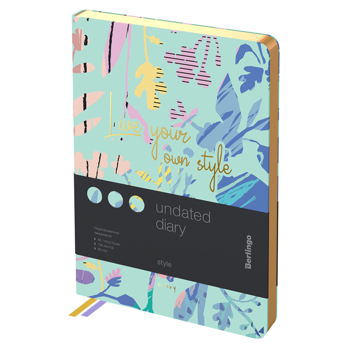 Ежедневник недатированный, А5, 136л., кожзам, Berlingo "Style", золотой срез, зеленый, с рисунком
