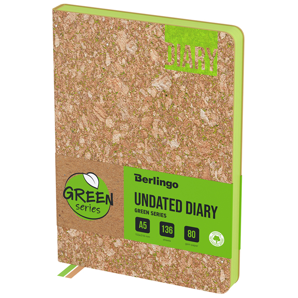 Ежедневник недатированный, А5, 136л., кожзам, Berlingo "Green Series", зеленый срез, светло-коричневый