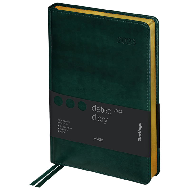 Ежедневник датированный 2023г., А5, 184л., кожзам, Berlingo "xGold", зол. срез, зеленый
