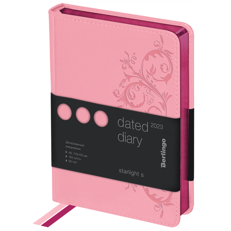 Ежедневник датированный 2023г., А6, 184л., кожзам, Berlingo "Starlight S", металлик срез, розовый