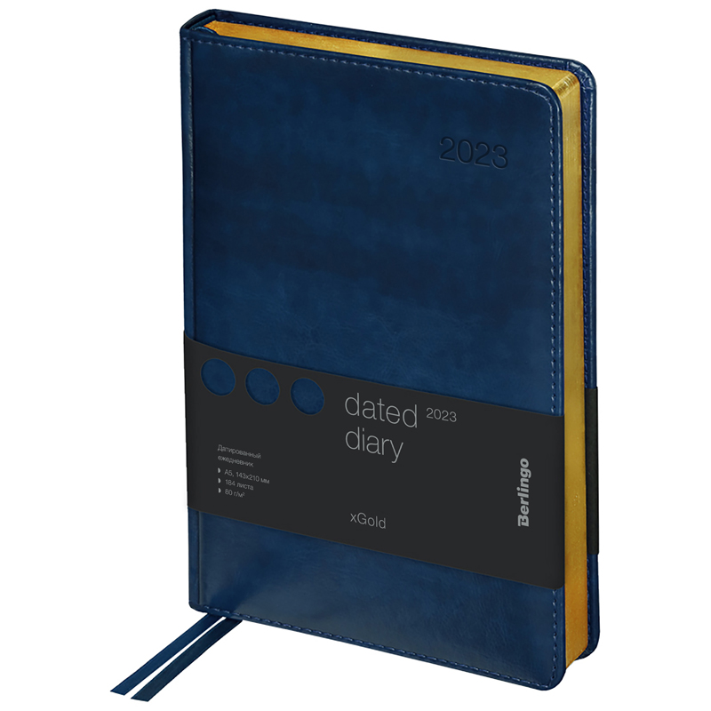Ежедневник датированный 2023г., А5, 184л., кожзам, Berlingo "xGold", зол. срез, синий