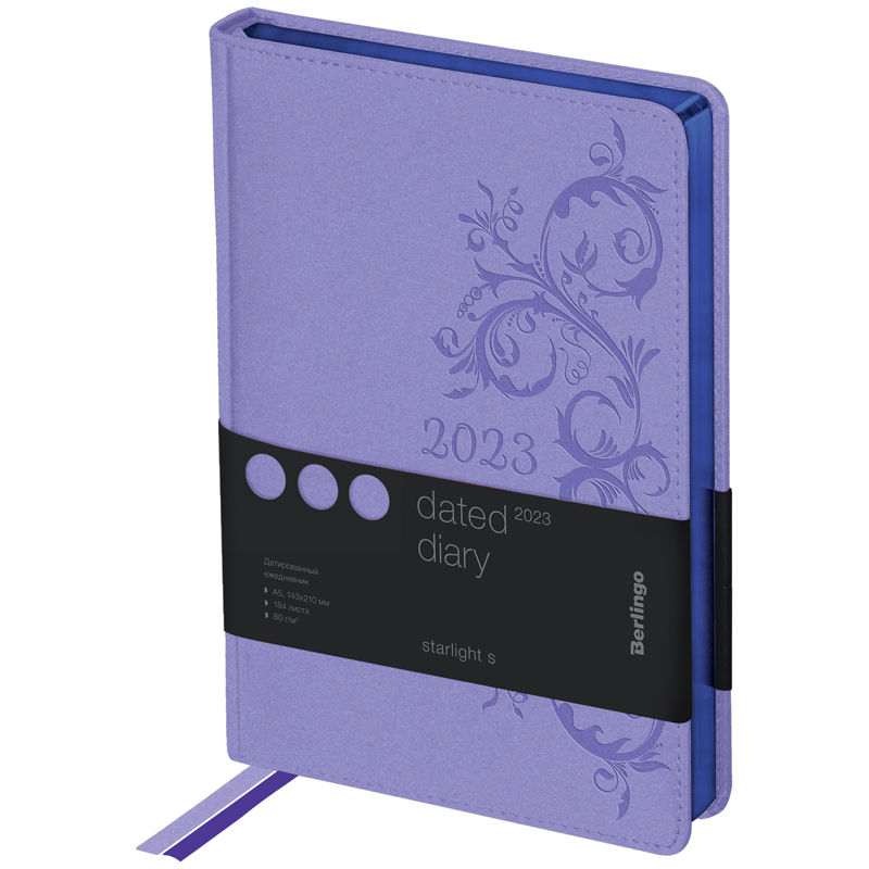 Ежедневник датированный 2023г., А5, 184л., кожзам, Berlingo "Starlight", сер. срез, фиолетовый