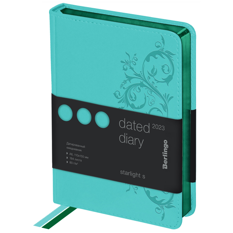 Ежедневник датированный 2023г., А6, 184л., кожзам, Berlingo "Starlight S", металлик срез, зеленый