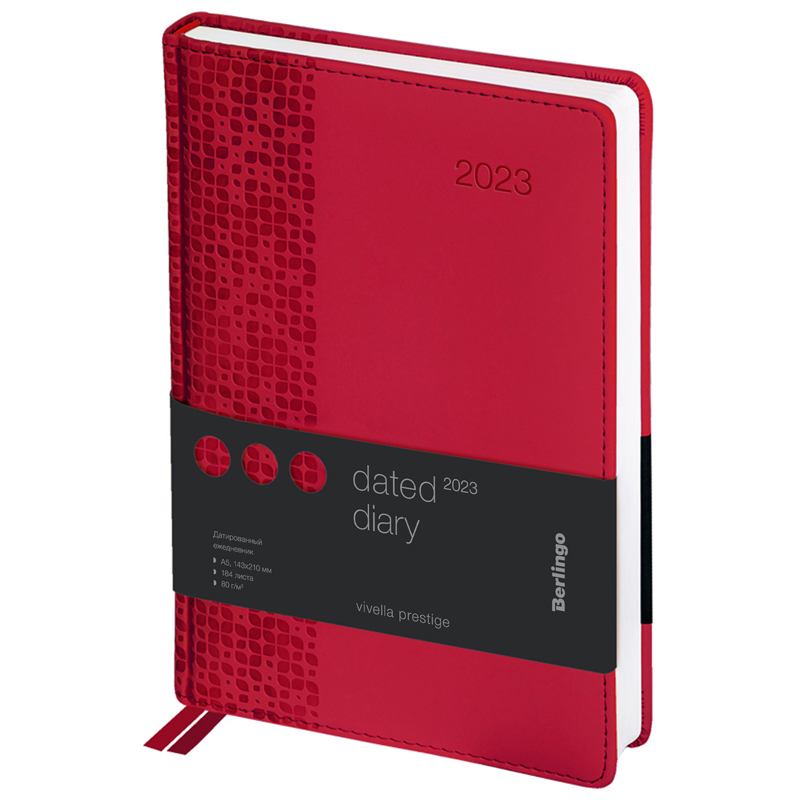 Ежедневник датированный 2023г., А5, 184л., кожзам, Berlingo "Vivella Prestige", красный