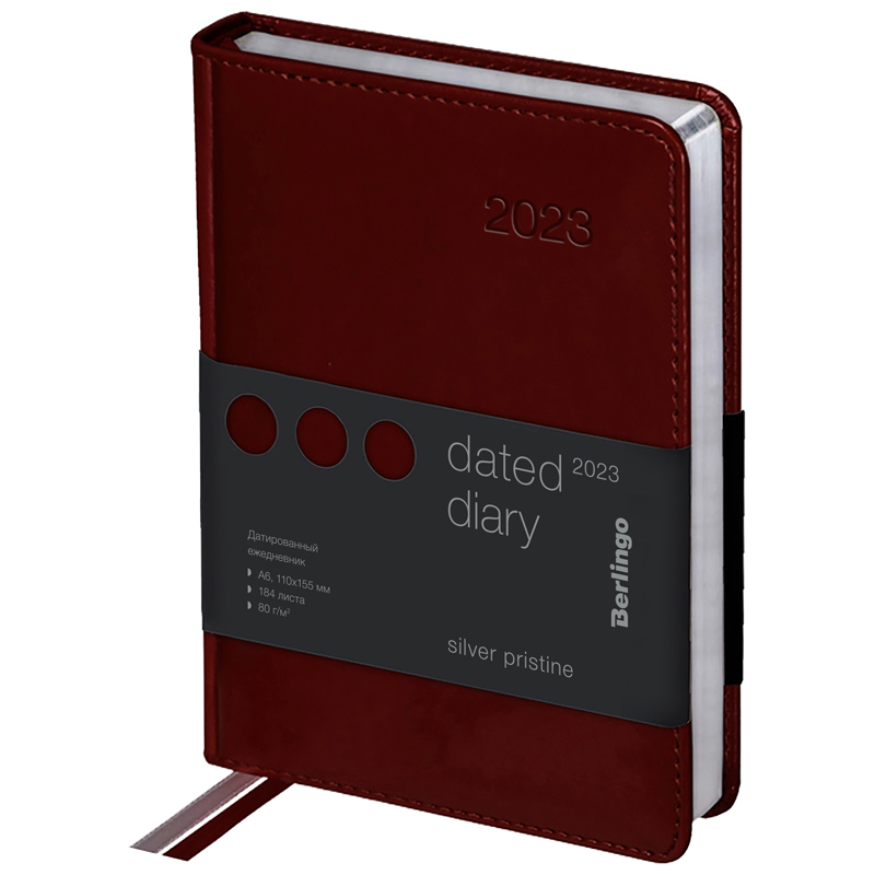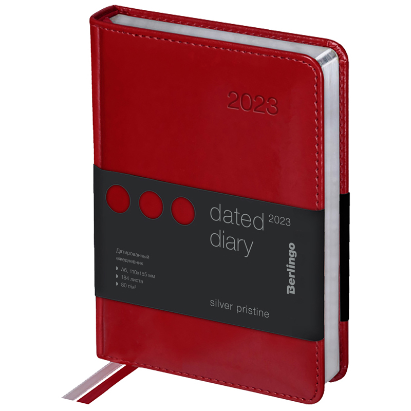 Ежедневник датированный 2023г., А6, 184л., кожзам, Berlingo "Silver Pristine", сер. срез, красный