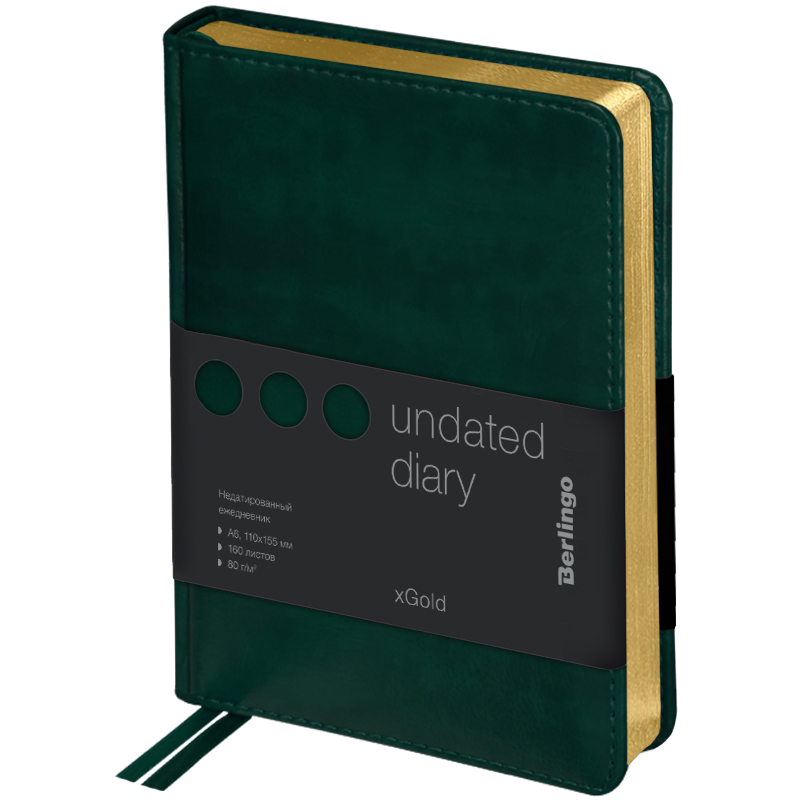 Ежедневник недатированный, А6, 160л., кожзам, Berlingo "xGold", зол. срез, зеленый