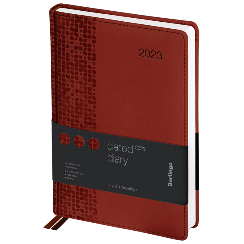 Ежедневник датированный 2023г., А5, 184л., кожзам, Berlingo "Vivella Prestige", коричневый