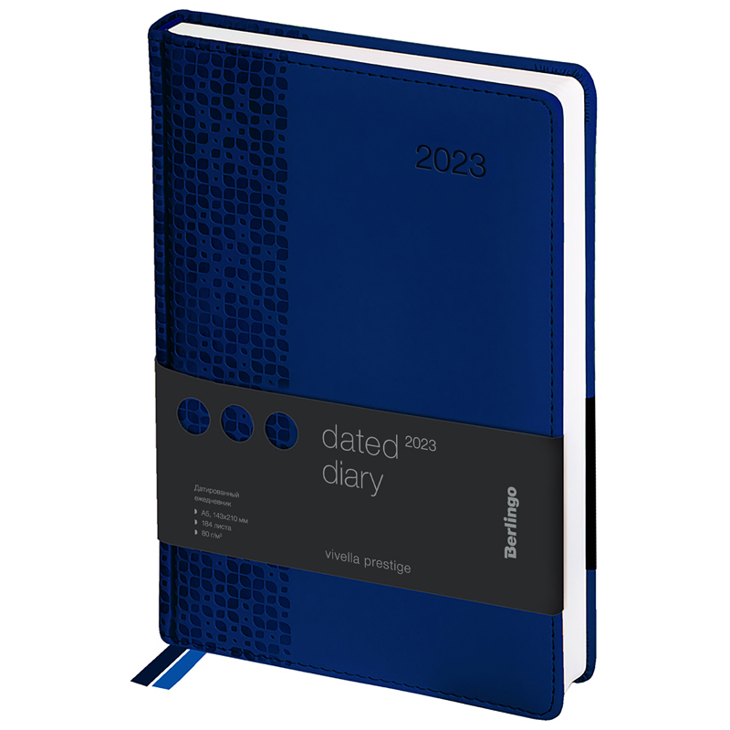 Ежедневник датированный 2023г., А5, 184л., кожзам, Berlingo "Vivella Prestige", синий