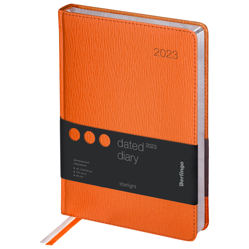 Ежедневник датированный 2023г., А5, 184л., кожзам, Berlingo "Starlight", сер. срез, оранжевый