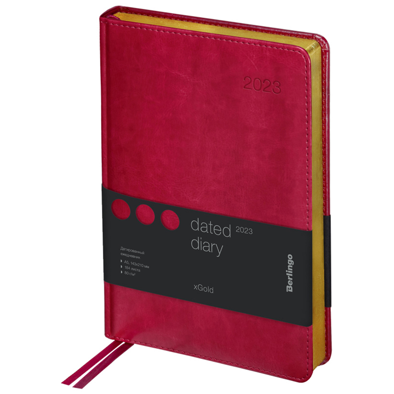 Ежедневник датированный 2023г., А5, 184л., кожзам, Berlingo "xGold", зол. срез, бордовый