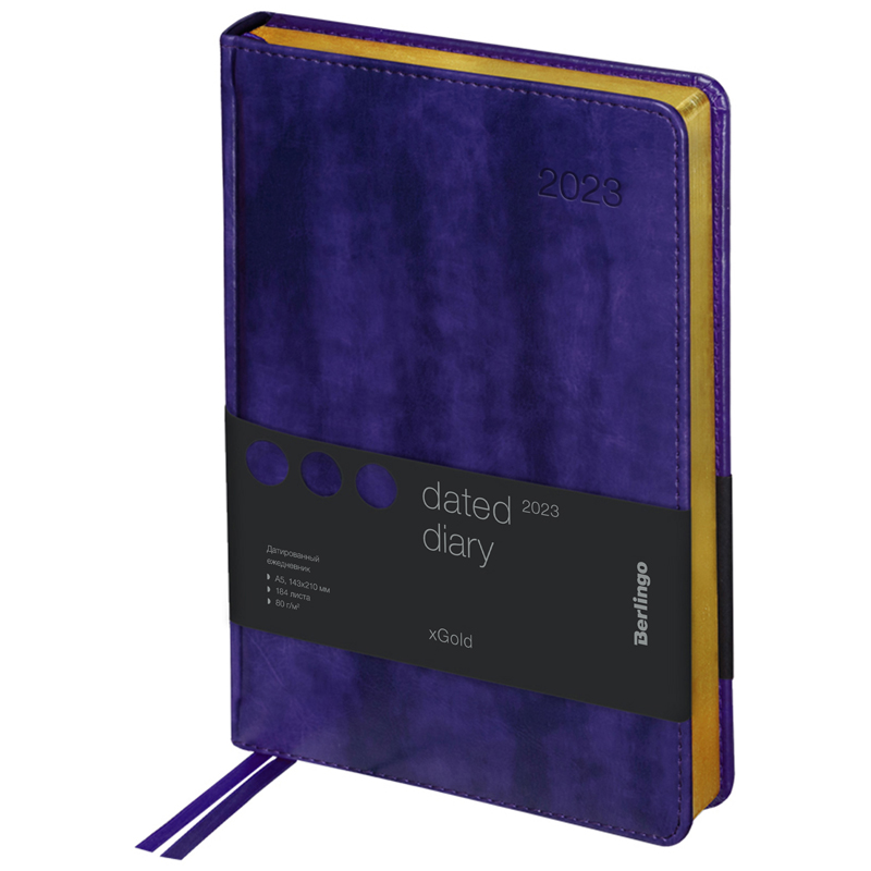 Ежедневник датированный 2023г., А5, 184л., кожзам, Berlingo "xGold", зол. срез, фиолетовый