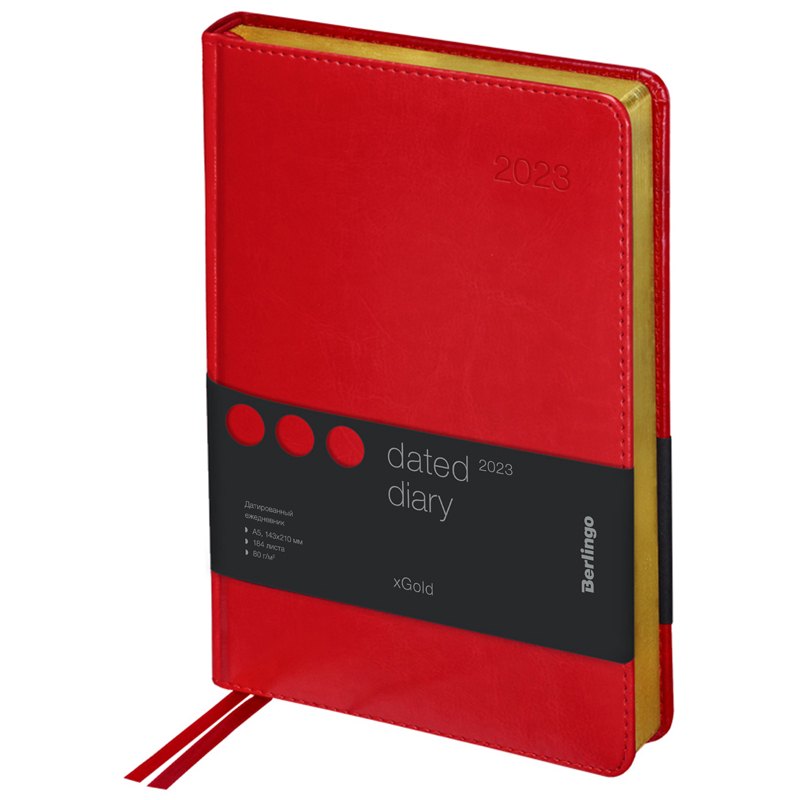 Ежедневник датированный 2023г., А5, 184л., кожзам, Berlingo "xGold", зол. срез, красный