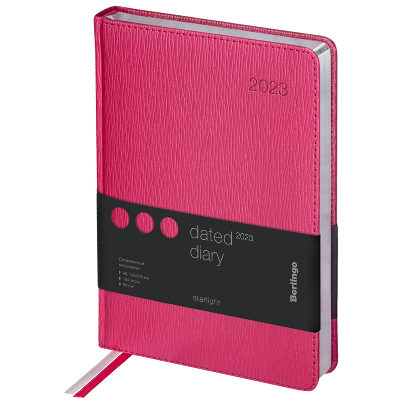 Ежедневник датированный 2023г., А5, 184л., кожзам, Berlingo "Starlight", сер. срез, фуксия
