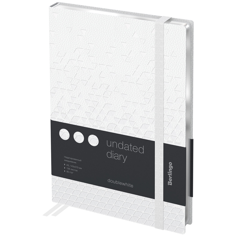 Ежедневник недатированный, А5, 136л., кожзам, Berlingo "DoubleWhite", серебряный срез, с резинкой, белый, с рисунком