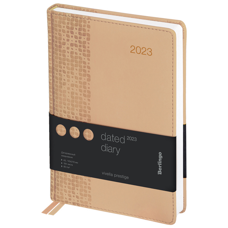 Ежедневник датированный 2023г., А5, 184л., кожзам, Berlingo "Vivella Prestige", бежевый