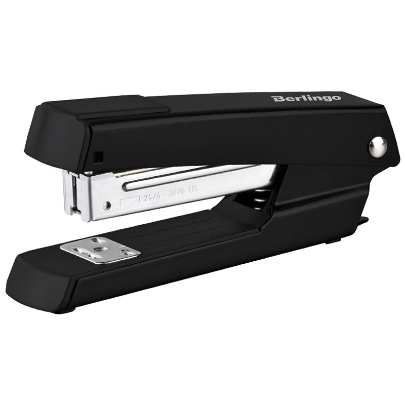 Степлер №24/6, 26/6 Berlingo "DoubleBlack", до 20л., пластиковый корпус, черный