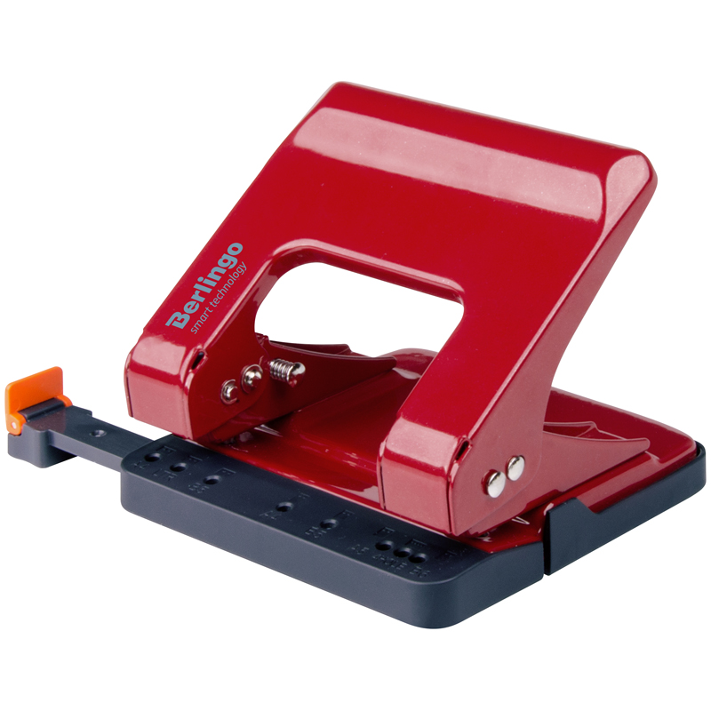 Дырокол энергосберегающий Berlingo "Smart Technology" 25л., металлический, фиксатор, линейка, красный