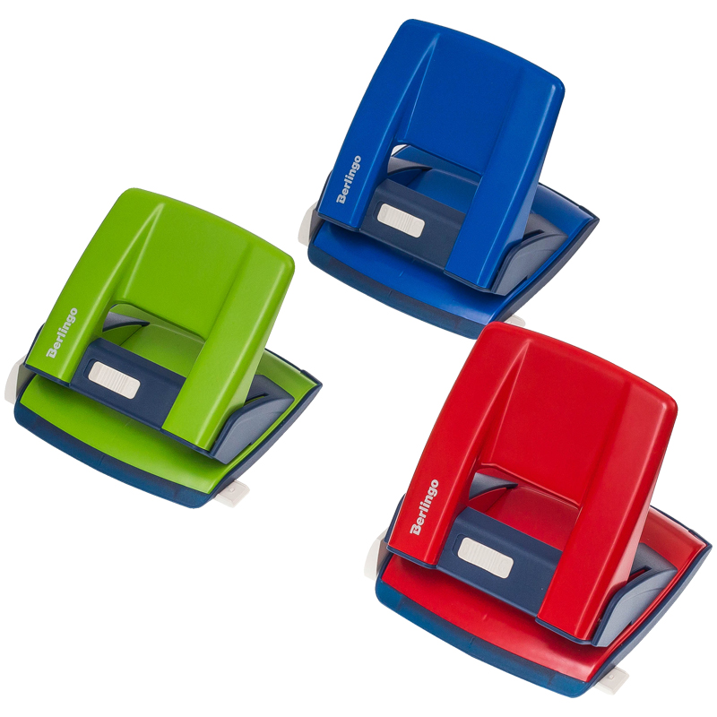 Дырокол Berlingo "Office Soft" 20л., пластиковый, ассорти, с линейкой