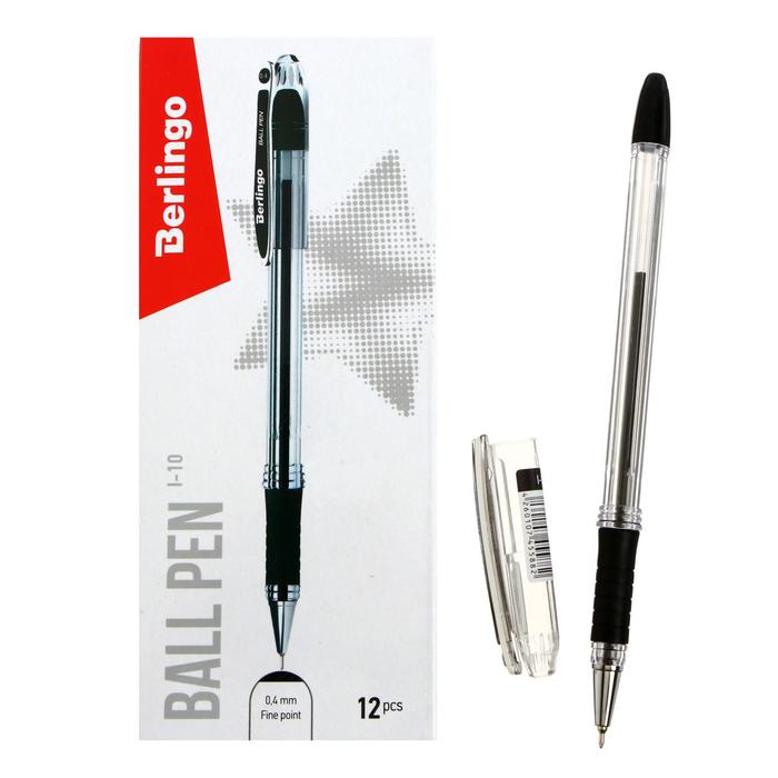Ручка шариковая Berlingo I-10, черная, 0,4 мм, резиновый упор ЦЕНА ЗА 1 ШТУКУ.