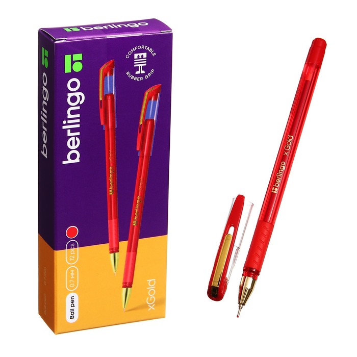 Ручка шариковая Berlingo xGold, стержень красный, узел-игла 0,7 мм