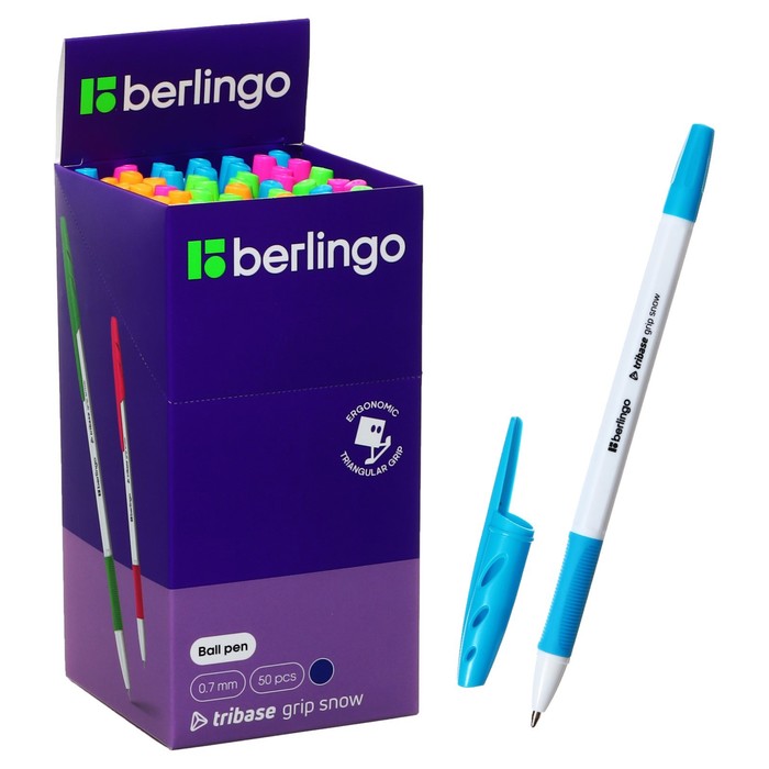 Ручка шариковая Berlingo "Tribase grip show", 0,7 мм, грип, синяя, микс