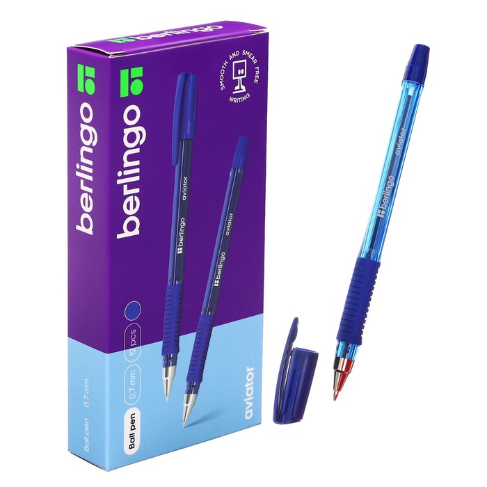 Ручка шариковая Berlingo "Aviator", 0,7 мм, грип, синяя