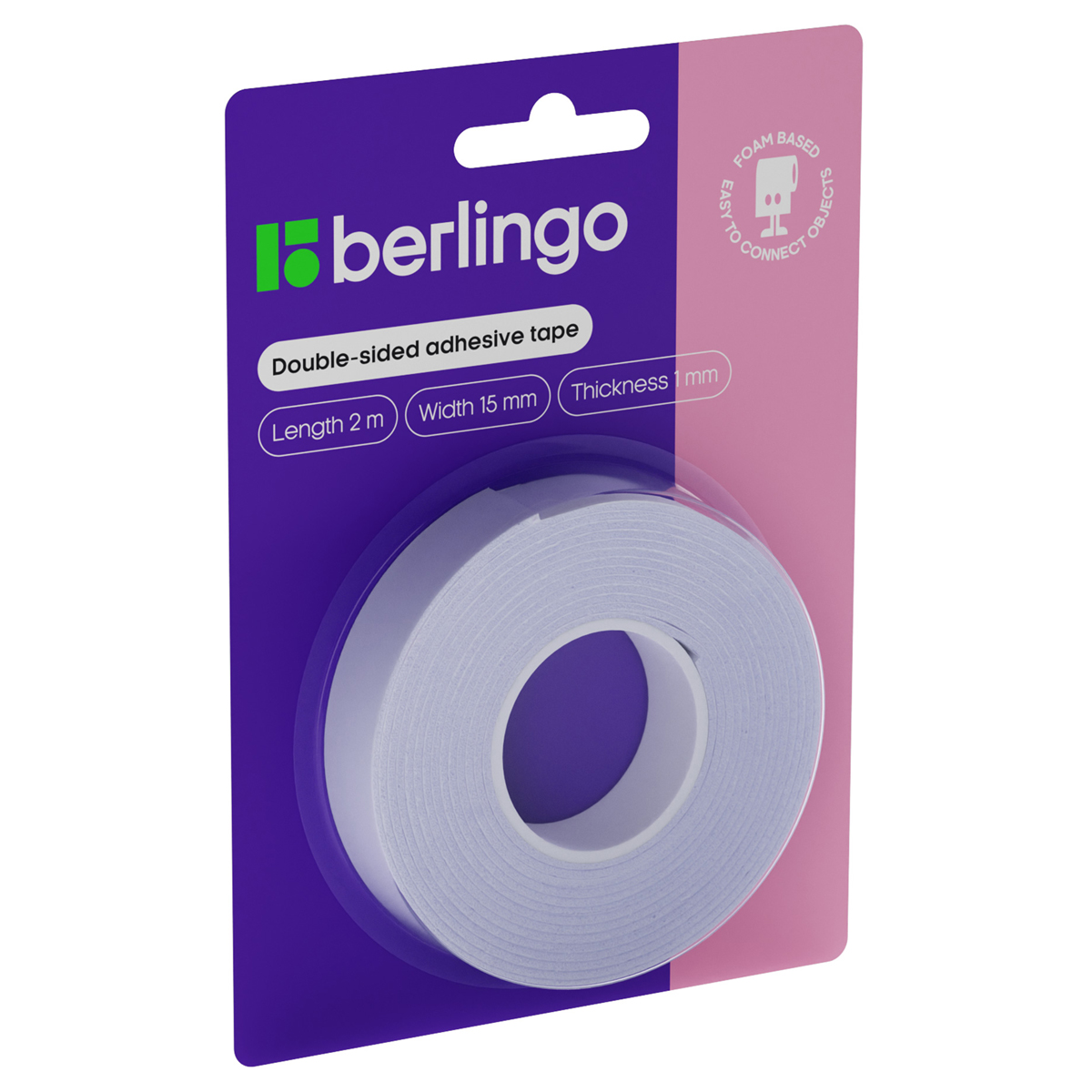 Клейкая лента двусторонняя Berlingo, 15мм*2м, на вспененной основе, 1мм, блистер