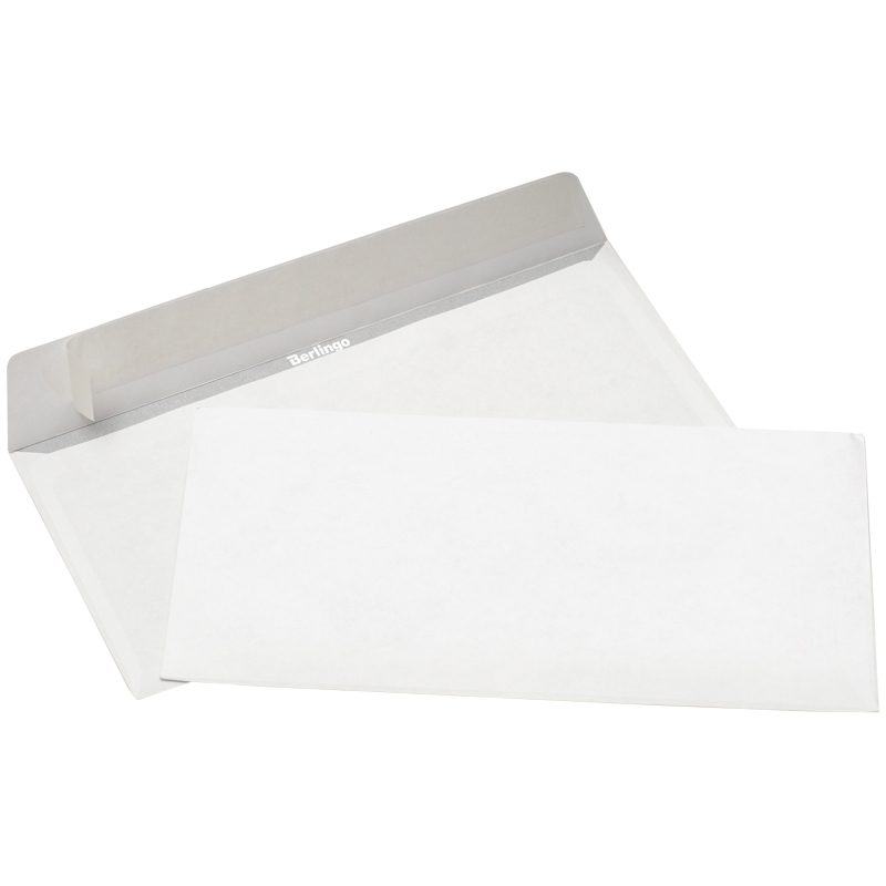 Конверт E65, Berlingo, 110*220мм, б/подсказа, б/окна, отр. лента, внутр. запечатка, термоусадка