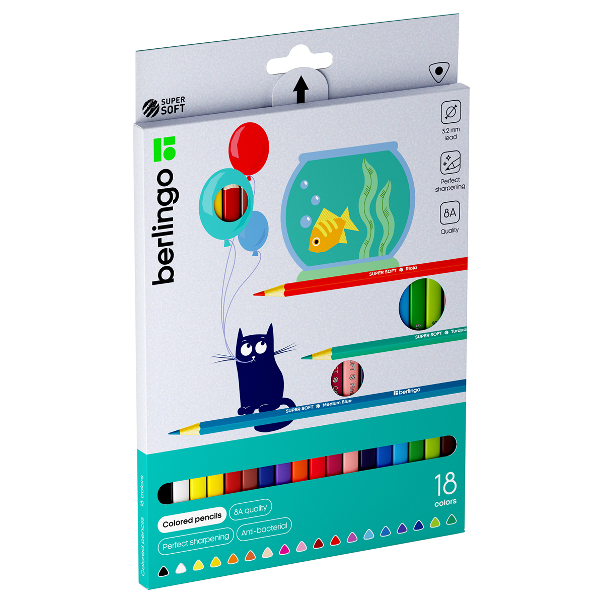 Карандаши цветные Berlingo "SuperSoft. Жил-был кот", 18цв., трехгран., заточен., картон, европодвес