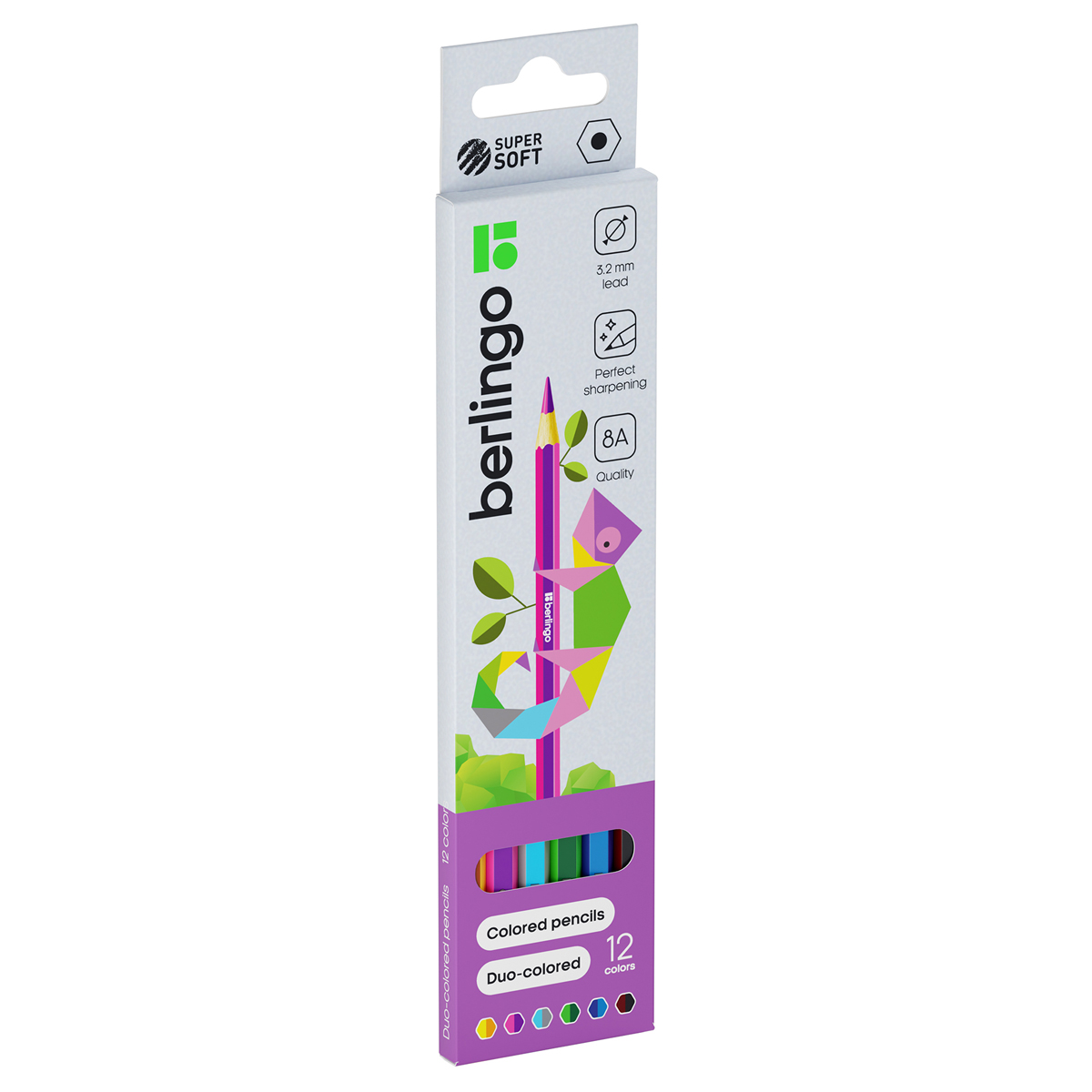 Карандаши цветные Berlingo "SuperSoft. Green Series", 12цв., из переработанной бумаги, заточен., картон, европодвес