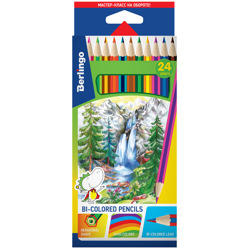 Карандаши с двухцветным грифелем Berlingo "Водопад", 12шт., 24цв., картон., европодвес