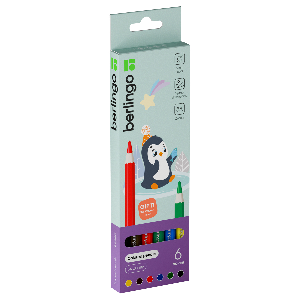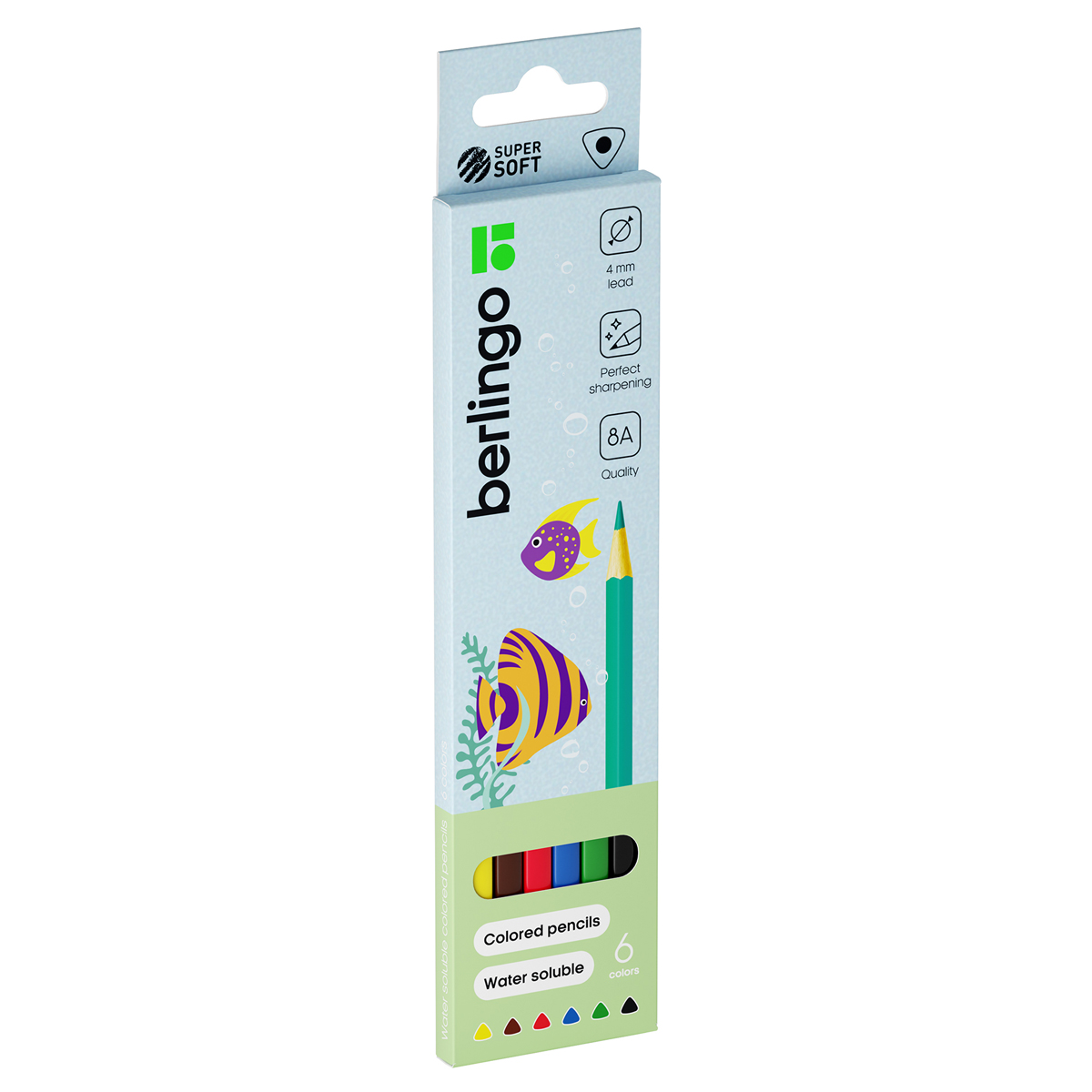Карандаши акварельные Berlingo "SuperSoft. Рыбки", 06цв., трехгран., заточен., картон, европод